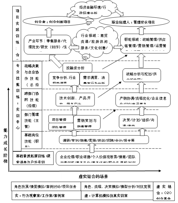 在建设应用型大学背景下,针对工商管理人才培养目标和素质要求,以目前的人力资源管理、市场营销、国际经济与贸易、文化产业管理、公共事业管理、金融数学为基础,按照创业者与职业经理人两条路径进行实训设计。