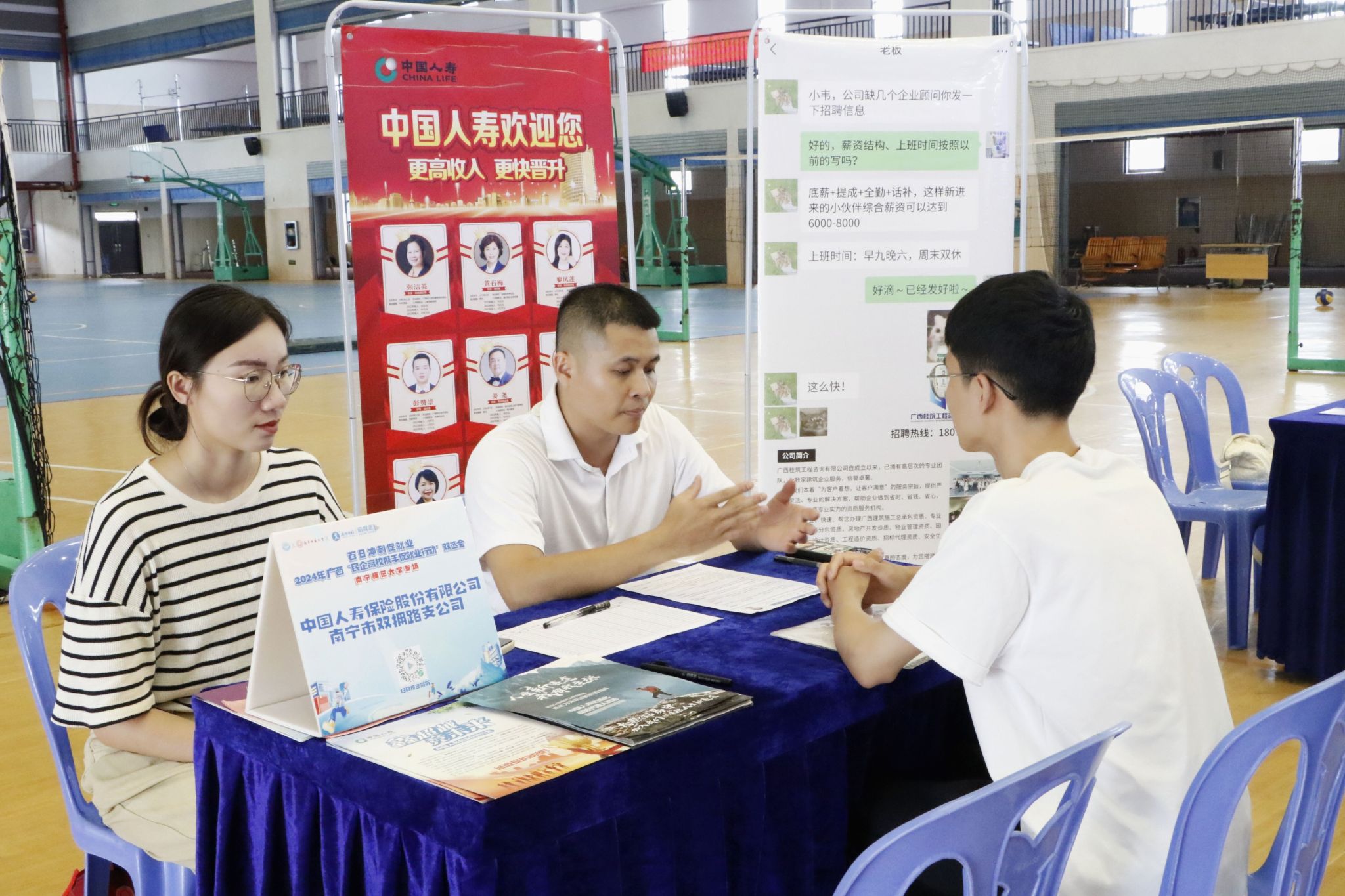 为了扩宽毕业生就业渠道,不断提升学生就业质量,扎实推进毕业生就业工作,5月10日,BWIN必赢在学校招生就业处的指导下,联合广西自治区工商联、广西营服务业发展交流会、广西锦绣前程人力资源有限公司等在五合校区体育馆举办了百日冲刺促就业2024广西“民企高校携手促就业行动”双选会,BWIN必赢、物流管理与工程学院、自然资源与测绘学院、美术与设计学院部分领导和老师到双选会现场参加活动。