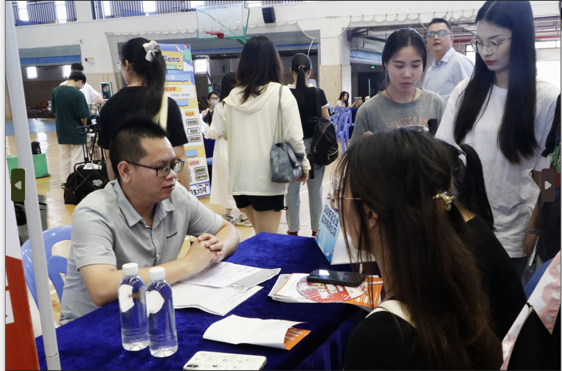 在双选会现场,南宁嘉里物流有限公司、深圳康佳电子科技有限公司华南分公司、广西德聚人和项目管理有限公司等近30家企业为毕业生提供了800多个工作岗位和实习岗位,这些岗位涵盖销售、教育、设计、金融、新媒体、房地产等诸多行业等。学校超过400名毕业生到现场参加双选会,求职者们络绎不绝,气氛热烈而有序。他们有的在驻足观看招聘海报,讨论公司的招聘条件和福利待遇,寻找心仪的岗位;有的在和企业代表面对面交流,展现自己的能力和特长。同时,各用人单位也纷纷介绍公司基本情况,展示企业文化、岗位需求及薪资待遇等信息,力求吸引更多优秀人才加入。部分学院领导和老师在现场参加活动,并和相关企业交流招聘工作。此外,双选会还吸引了一批非毕业生来到双选会提前来到双选会观摩学习,提前了解招聘工作岗位。