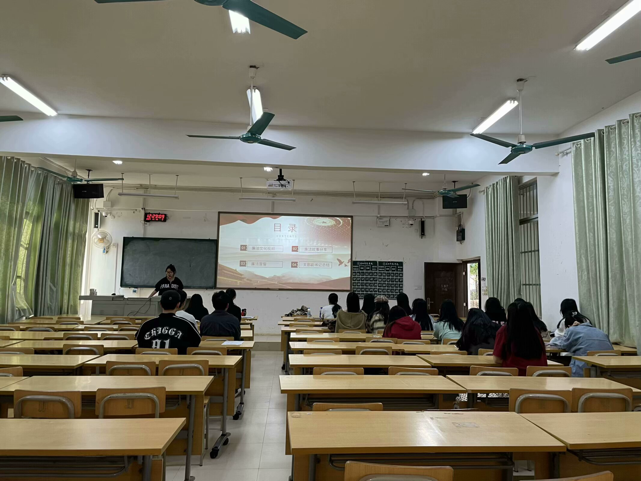 最后,副书记周琴带领党支部全体党员共同起立宣誓并强调,廉洁自律是我们每个党员的基本要求和责任担当,希望通过本次党日活动能够进一步加强对党纪国法的理解与认识,增强廉洁自律的自觉性及坚定性,共同坚守廉洁清风的底色。同时,作为在校大学生,要加强新时代廉洁文化建设,勇于推进自我革命、保持党的先进性及纯洁性,营造清正的校园氛围。