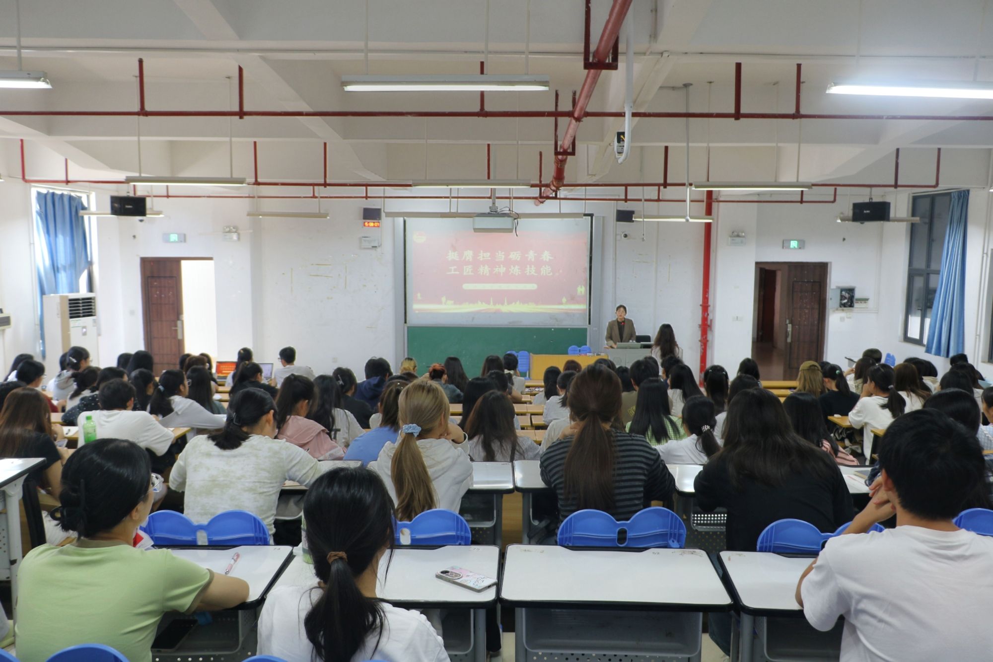 刘家瑶老师以“挺膺担当砺青春,工匠精神炼技能”为主题进行讲授。她以中国航天领域的火箭“心脏”焊接员高凤林和火药雕刻师为例,生动诠释工匠精神的内涵,并指导学生如何利用课余时间提升个人技能。她强调学生们应不断增强创新能力,在各自的岗位上发扬工匠精神。