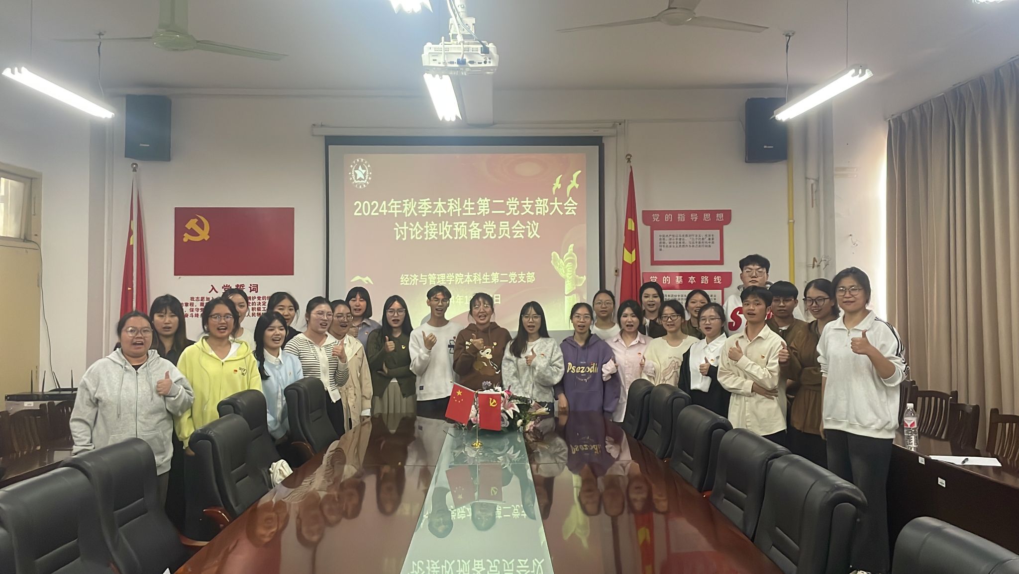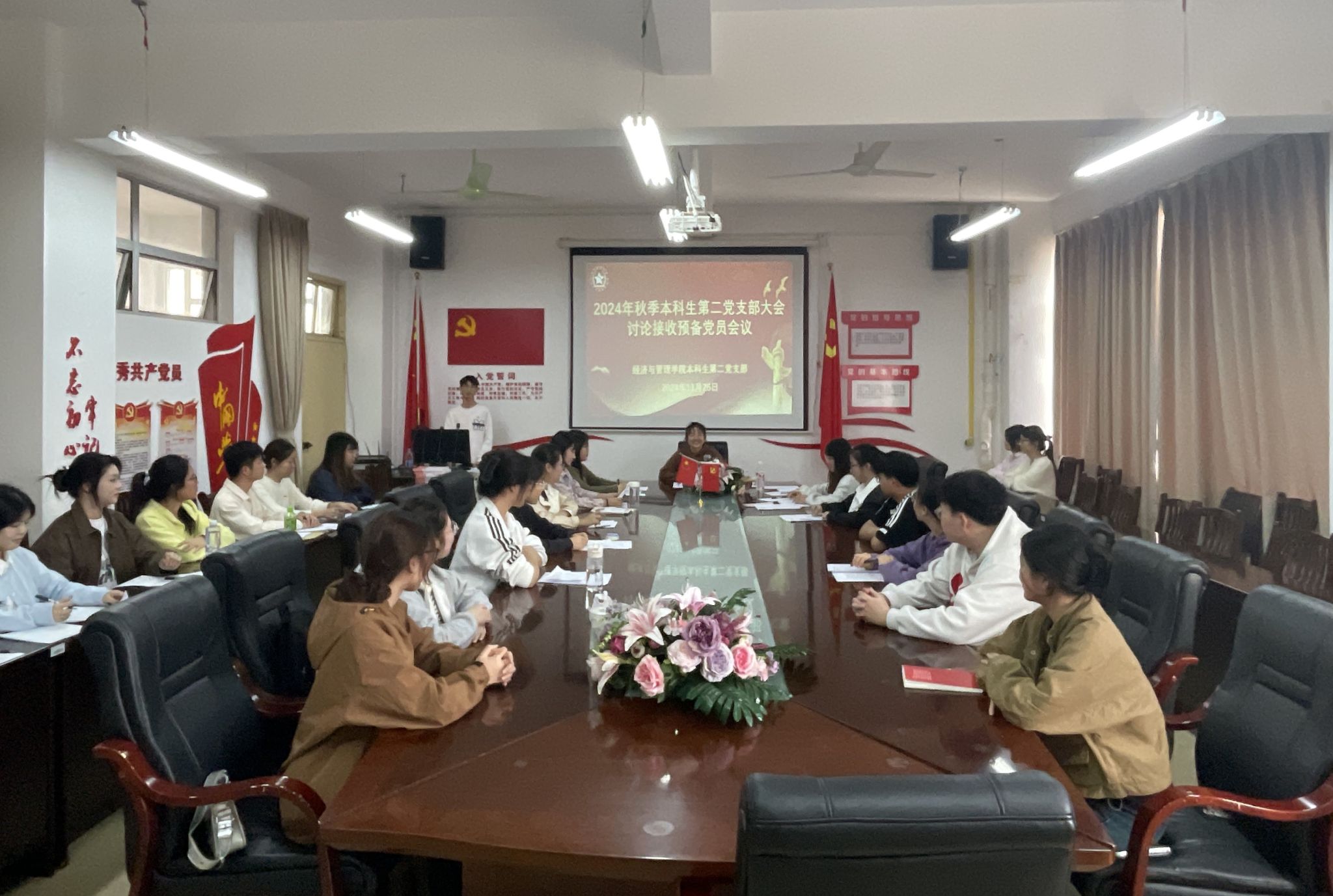 11月26日下午,BWIN必赢本科生第二党支部于明秀校区召开2024年下半年预备党员吸收大会。支部全体党员参加会议,会议由支部副书记陆柳政主持。