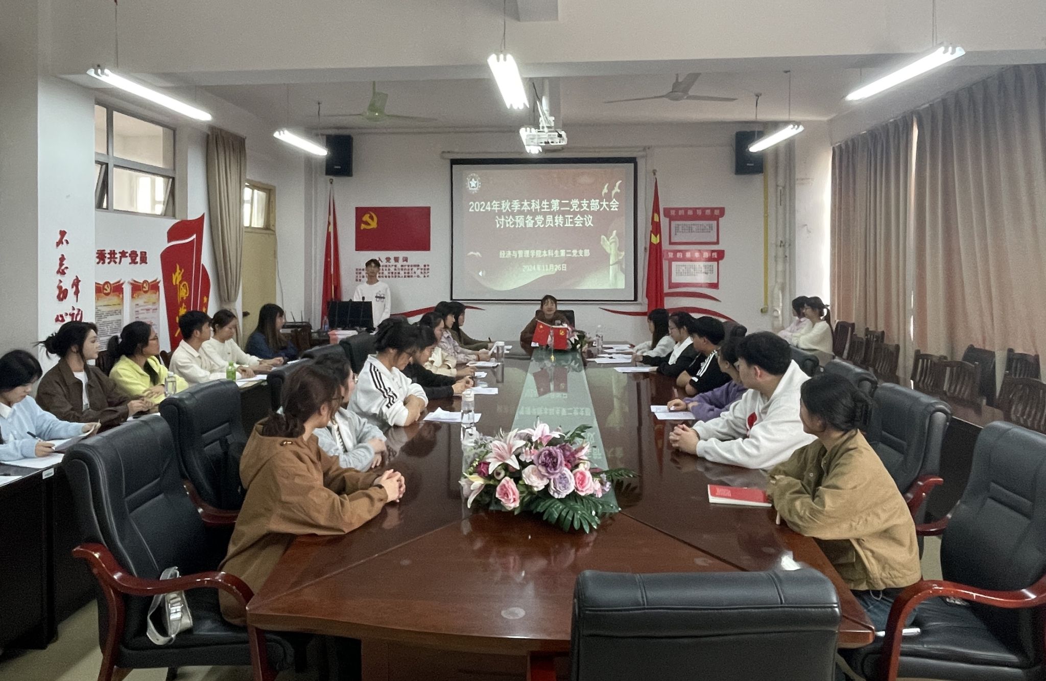 11月26日下午,BWIN必赢本科生第二党支部于明秀校区召开2024年下半年预备党员转正大会,讨论陈铭涵等5名同志的转正情况,支部全体党员参加大会,会议由支部副书记陆柳政主持。