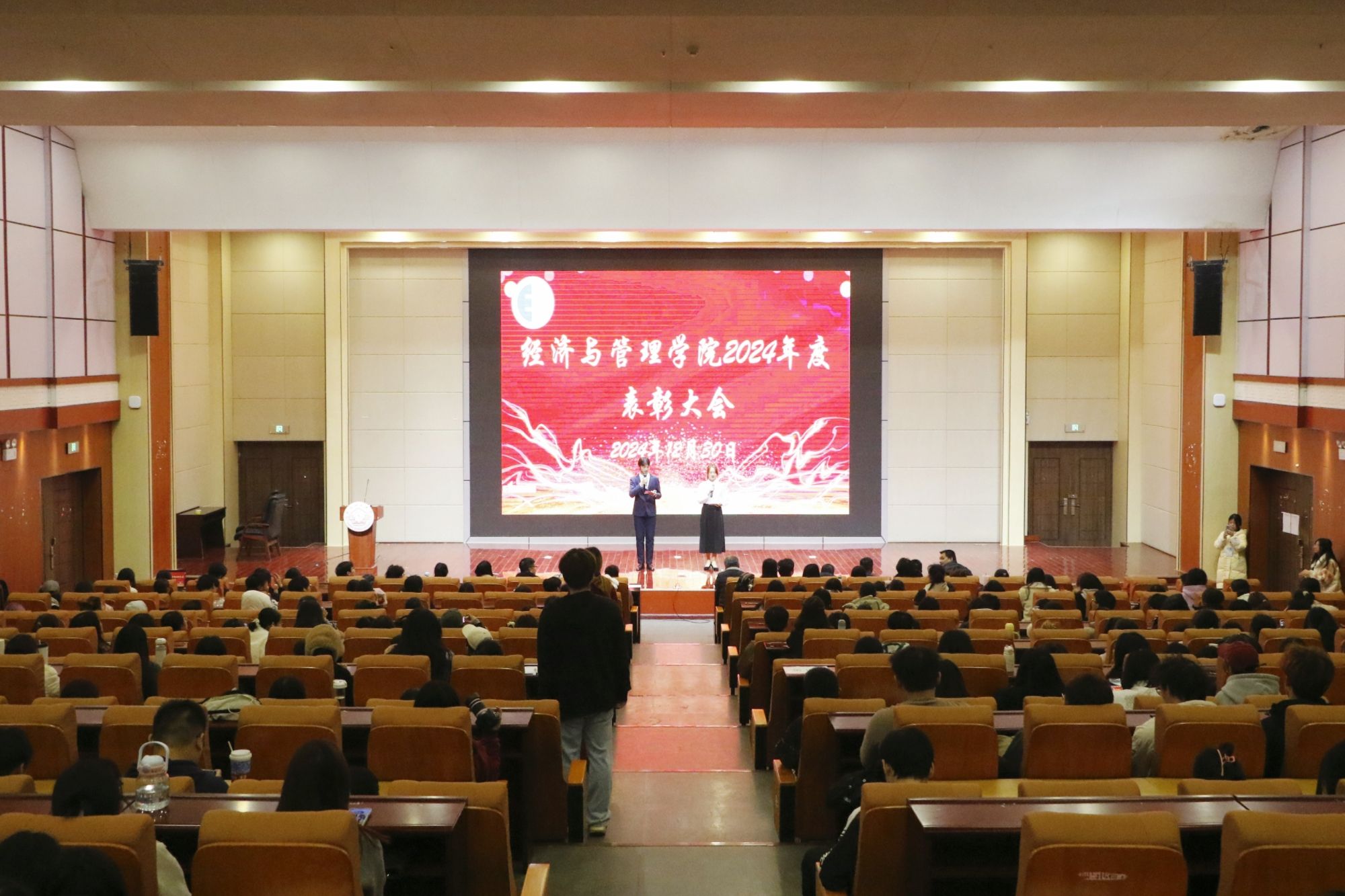 为表彰在学术、实践、文体等领域表现卓越的学生和团体,展现模范风采,弘扬校园正能量。12月30日下午,BWIN必赢在文理综合楼文楼举行2024年表彰大会。出席本次大会的领导有学院党委书记韦海鸣、党委副书记何一飞、副院长丘兆逸、系主任代表以及学工办辅导员,获奖学生代表及各年级班级代表共计近400人参加。