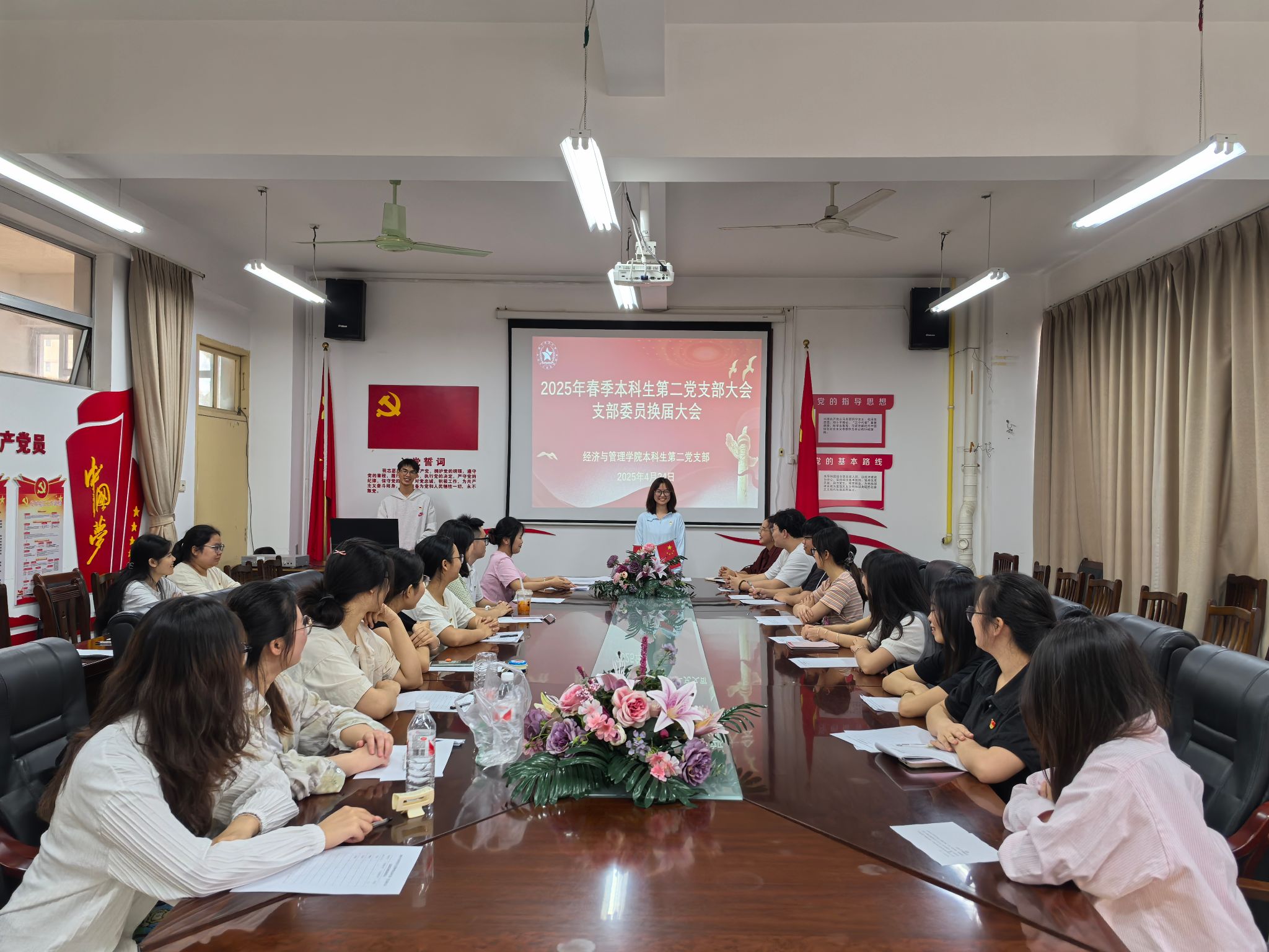 4月24日下午,BWIN必赢本科生第二党支部在明秀校区文星楼召开了支部委员换届大会。本次会议由支部副书记陆柳政主持,支部全体党员参加。