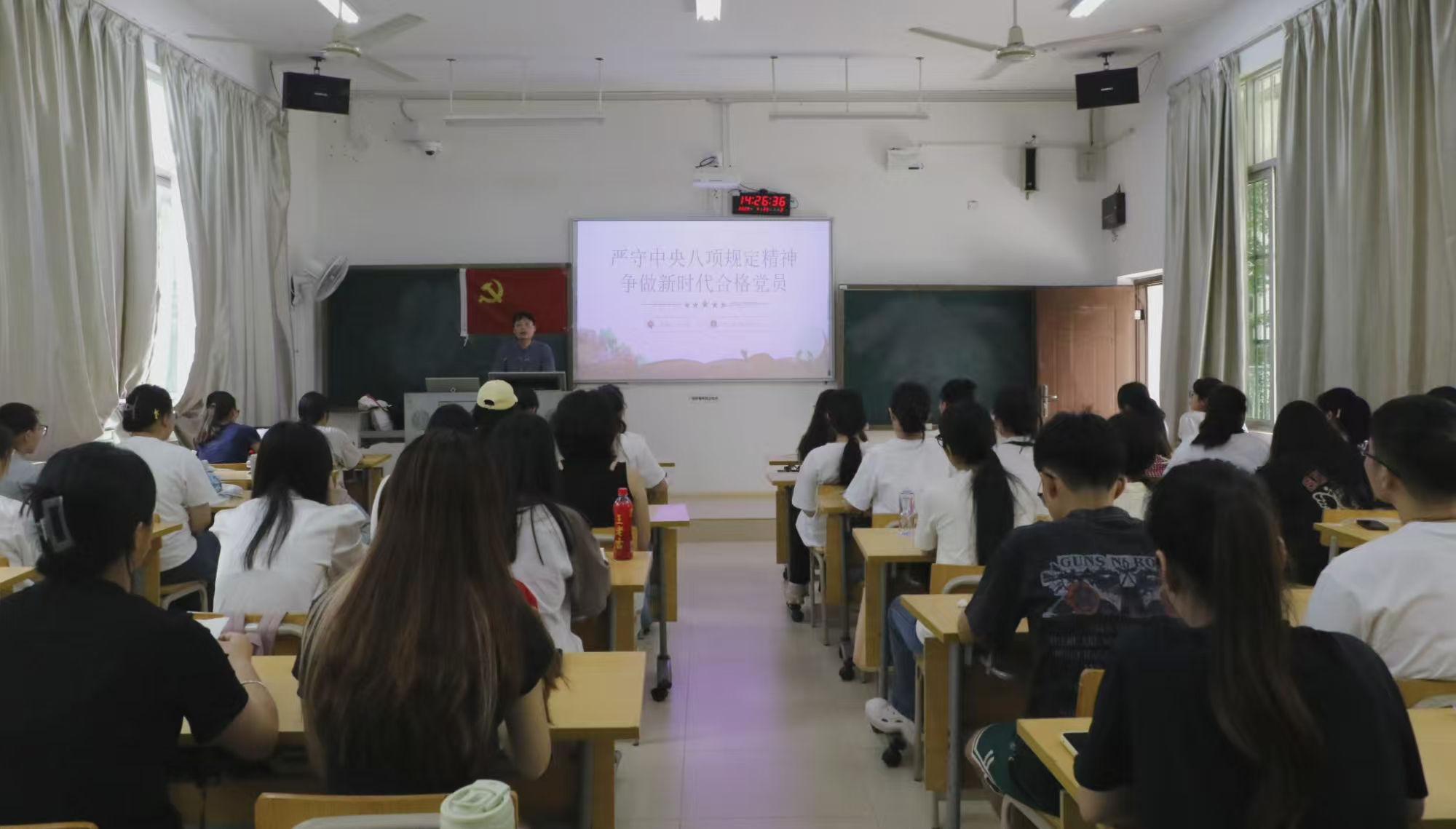 何玲玲副院长为学员们讲授《严守中央八项规定精神,争做新时代合格党员》专题党课,她从作风建设的历史性成就切入,深入探讨其重要意义、落实举措及基层党员行动路径。她指出,党的十八大以来,中央八项规定有效破解作风顽疾,成为“带电高压线”,但“四风”问题仍需持续纠治。何副院长强调,作风建设关乎党的执政根基,需以群众获得感检验成效,旨在解决基层问题,密切党群关系,同时营造干事创业生态,为现代化建设清障护航。何副院长向全体学员提出三点要求:一是深学细悟习近平新时代中国特色社会主义思想,将“两个维护”融入日常学习中;二是要力戒形式主义,作为党员要牢记党的根本宗旨,以务实作风服务同学。主动了解同学需求,解决实际困难,以扎实工作赢得信任;三是要严守规章制度,培养高尚品德,树立良好形象。