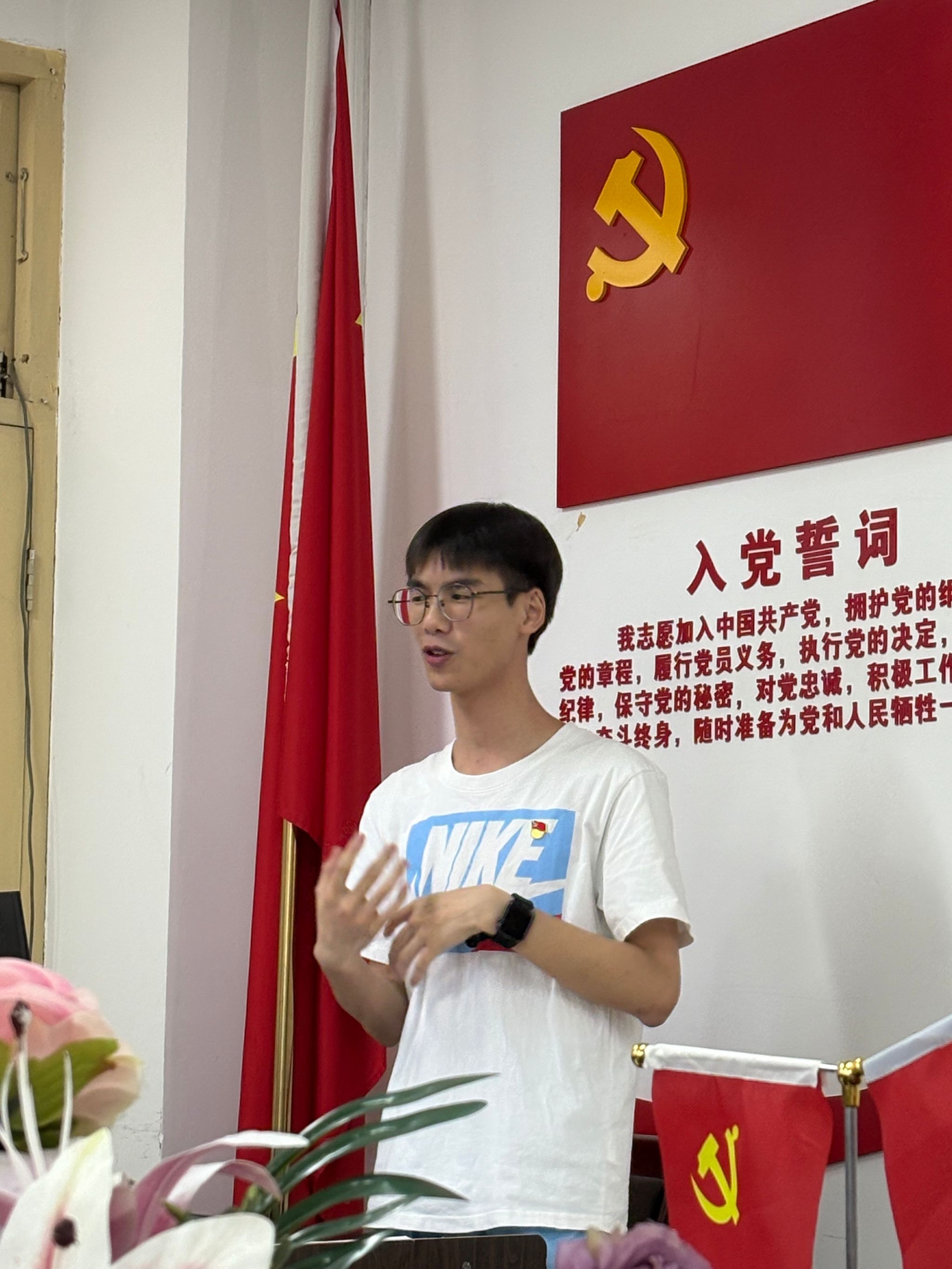 陆柳政同志结合跨专业考研实践,从时间规划、院校筛选及学习方法三方面分享经验,建议合理安排备考节奏,综合考量院校专业实力与自身适配度。谢浩同志结合自身备考经历,提醒大家切勿轻视英语学习,需均衡分配各科备考精力。陈巧兰同志聚焦英语学习,提出分阶段提升策略。她建议,前期依托真题精读夯实词汇语法基础,后期强化写作与口语输出训练。樊鹏举同志围绕考研调剂,详解研招网、目标院校官网等信息获取渠道,指出调剂需提前熟悉规则、密切关注动态并积极准备复试。最后,刘家瑶老师总结发言。她肯定了四位同志分享内容的实用性,同时鼓励同学们将经验转化为个性化备考计划,希望全体党员同志明晰自身发展方向,勇敢面对挑战。