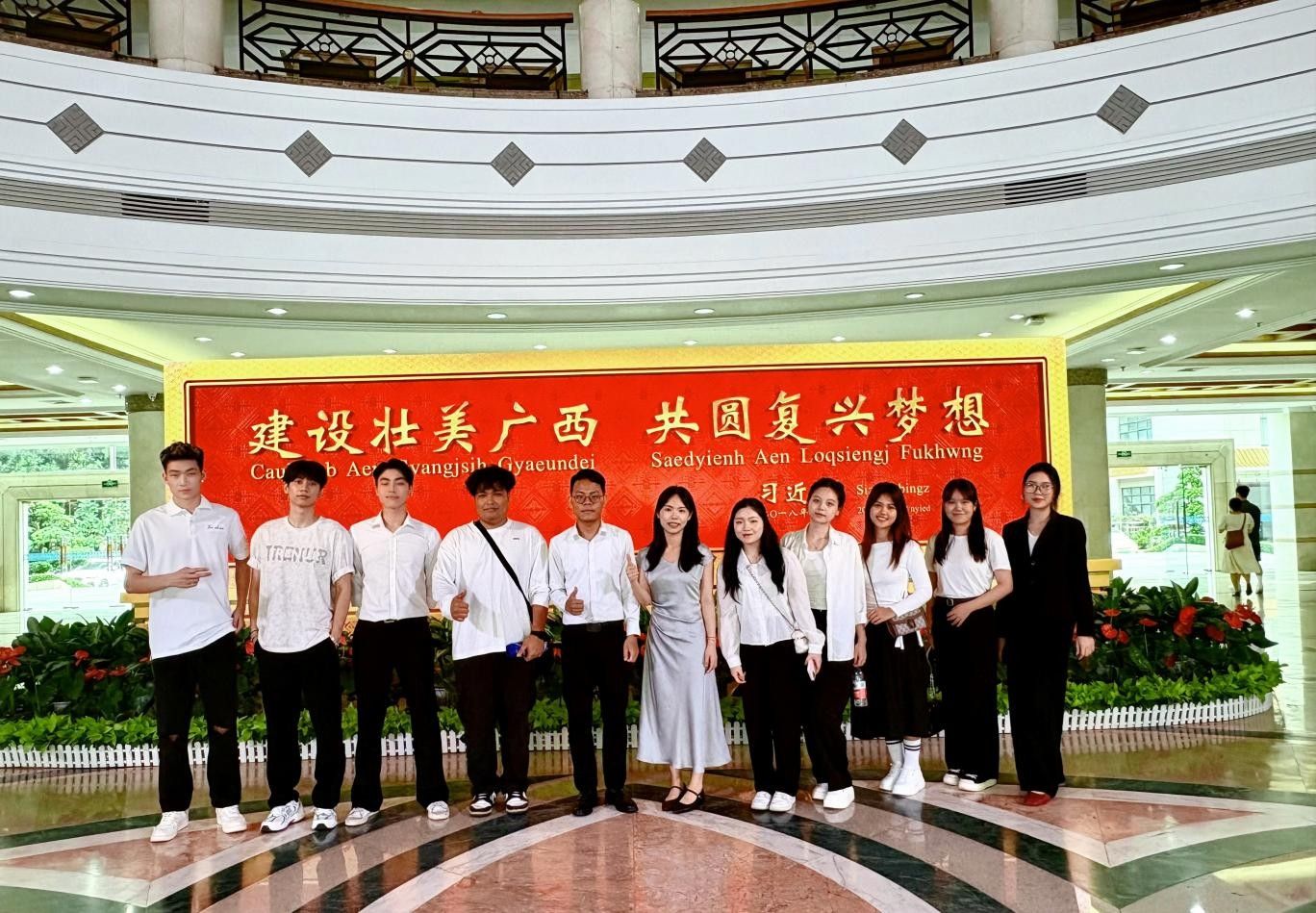 为了促进东盟国家留学生对中国制度和文化的了解,加深不同国家学生之间的交流与友谊,6月7日,BWIN必赢组织来自柬埔寨、泰国、越南和老挝的10余名留学生代表,前往广西人民大会堂参观学习。