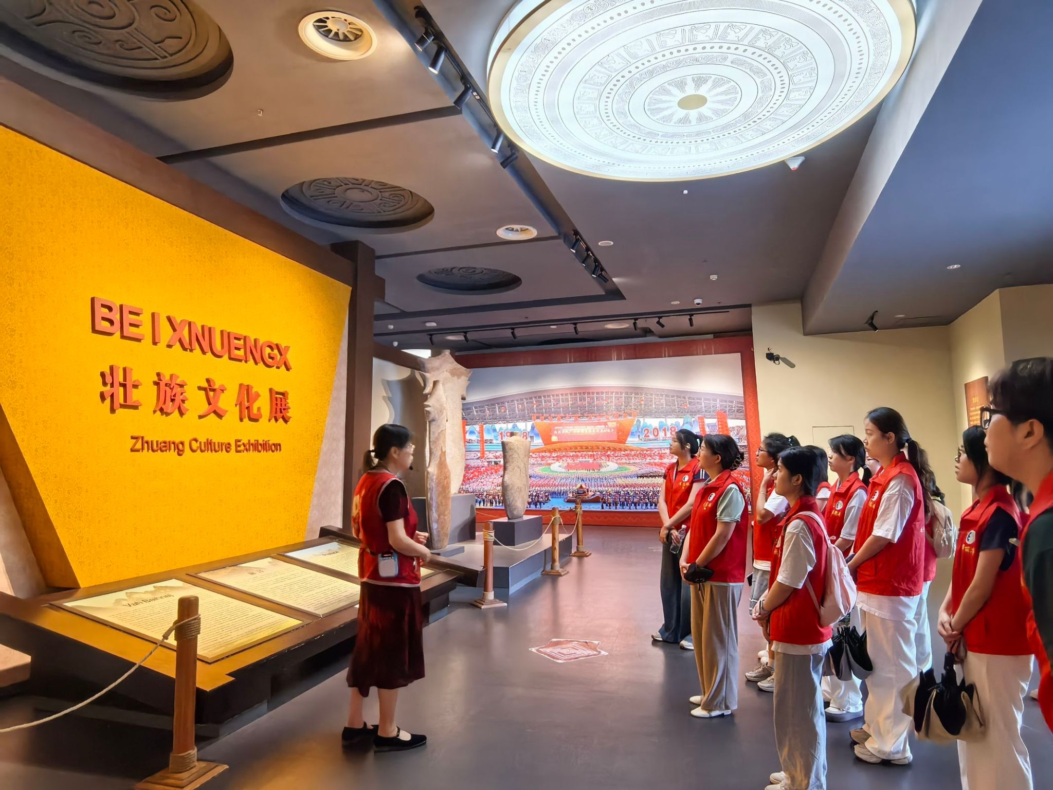 支部重点参观了壮族文化展,在讲解员的带领下,通过文物实物、图文展示、多媒体沉浸式体验等方式近距离领略到了广西历史文化和各民族的独特魅力,了解了具有广西民族传统文化特点的铜鼓文化,加深了对共同团结奋斗、共同繁荣发展的认识。党员们纷纷表示要自觉做民族团结的践行者,像石榴籽一样紧紧抱在一起,在学习和工作中积极促进各民族交往交流交融。最后支部书记刘家瑶在活动中强调,全体党员要以习近平总书记关于加强和改进民族工作的重要思想为指导,自觉维护民族团结的坚定意识,铸牢中华民族共同体意识。