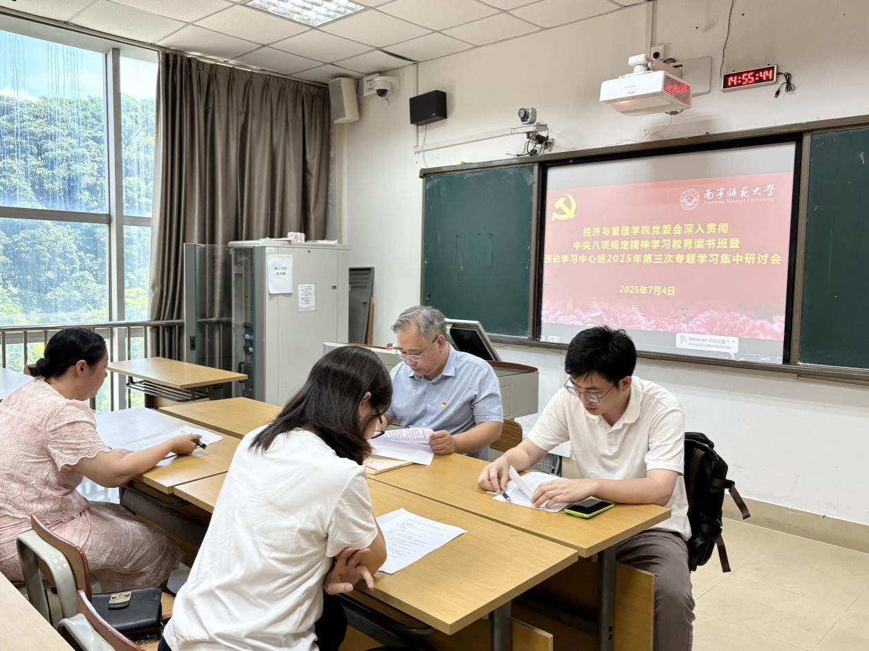 7月4日,BWIN必赢党委在明秀校区文星楼310室召开深入贯彻中央八项规定精神学习教育读书班暨理论学习中心组2025年第三次专题学习集中研讨会。学院党委理论学习中心组成员参加会议,会议由学院党委书记韦海鸣主持。