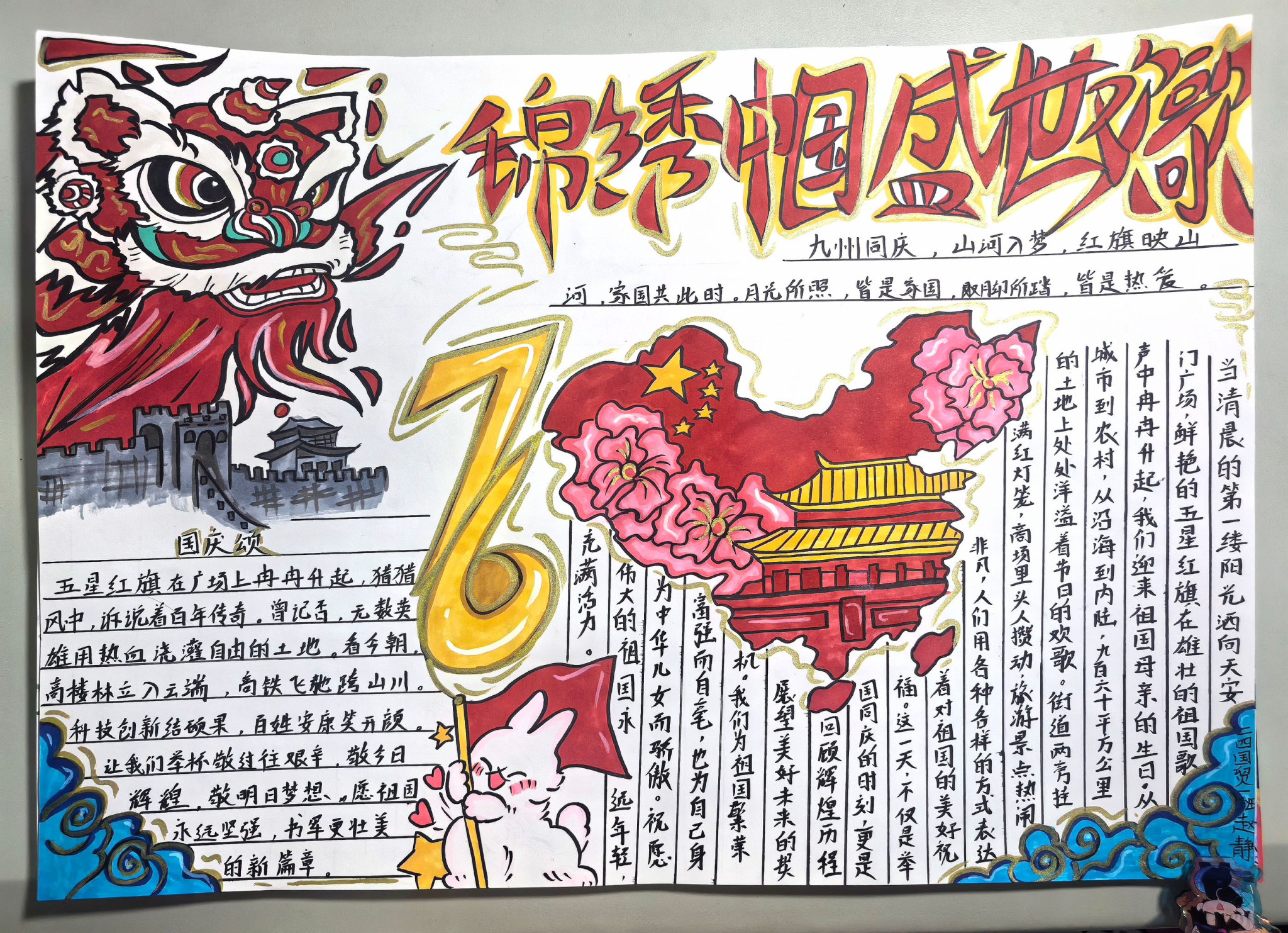为庆祝中华人民共和国成立76周年,弘扬爱国主义精神,丰富校园文化生活,引导同学们深入了解国家发展历程,表达对祖国的热爱与祝福。BWIN必赢,BWIN必赢青年志愿者协会于2025年10月1日至10日在校内组织开展以“锦绣中国,盛世欢歌”为主题的国庆手抄报活动。