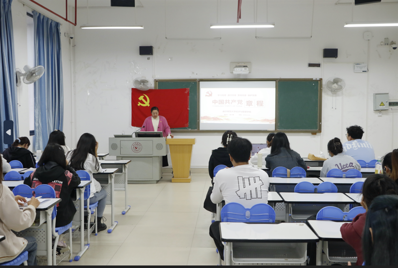 第一专题中,纪明教授带领大家学习贯彻2024年全国两会精神。全面深入阐释了 2023年的政府工作报告和2024年政府工作任务,重点强调了全国两会精神的主要内容并鼓励当代大学生应担当使命,努力学习奋斗。第二专题中,何一飞副书记从近代中国面临的重大历史难题切入,讲述了近代中国的救亡图存之路,使发展党员深刻理解了救亡之路的艰辛,着重强调了中国共产党的“四个伟大成就”和伟大建党精神,鼓励大家要艰苦奋斗,不忘初心。第三专题中,梁小霞老师则带领学生全方位解读《中国共产党章程》,围绕党的二十大对党章作的重要修改、党章的概述、发展历程、总纲和党章的条文五个方面展开讲解。她指出,今后成为一名合格的党员,个人的思想认识、理论知识和行为规范都要与时俱进,要把学习党章作为必修课,自觉学习党章、遵守党章、贯彻党章、维护党章,自觉加强党性修养,为党分忧为国尽责为民奉献。本次培训班授课顺利开展,使发展对象加深了对党的基本理论、基本知识的理解和掌握,进一步坚定了理想信念,强化了党性修养,端正了入党动机,为早日成为合格的共产党员打下基础。