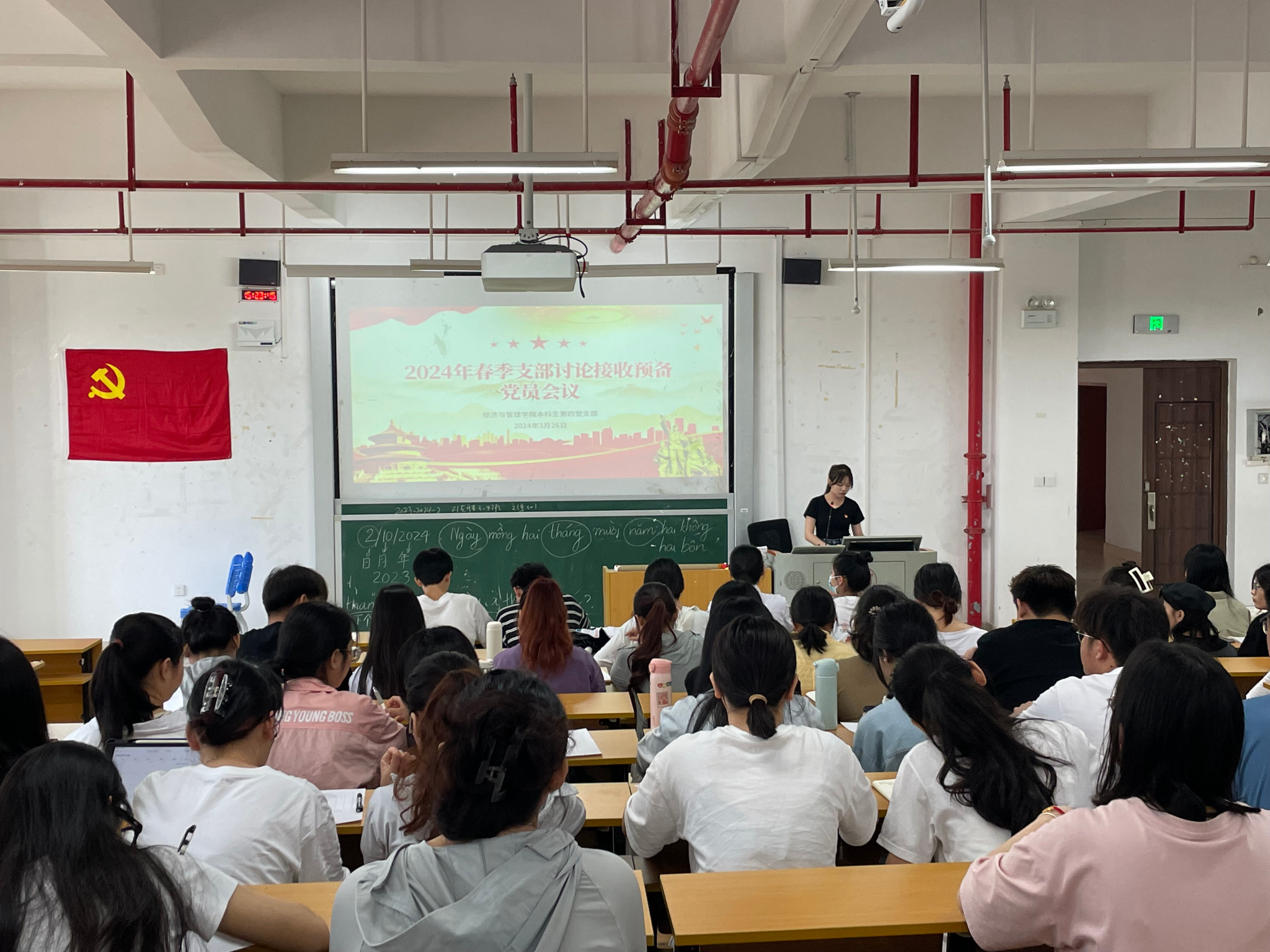 2024年3月26日下午,BWIN必赢本科生第四党支部于文综301教室召开预备党员吸收大会,会议由支部支委苏新媛主持,支部全体党员参加。