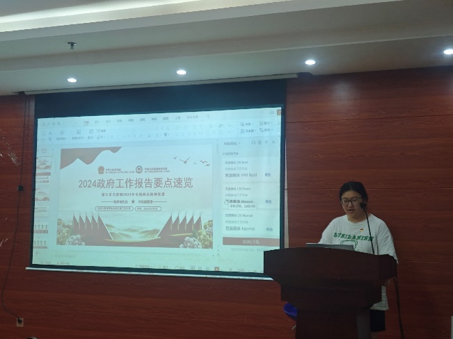 活动开始,曾心玉同志首先带领大家回顾了过去一年党和政府所取得的成就,并指出过去一年取得的成绩,根本在于习近平总书记领航掌舵,在于习近平新时代中国特色社会主义思想科学指引,是以习近平同志为核心的党中央坚强领导的结果,是全党全军全国各族人民团结奋斗的结果。后续曾心玉同志又带领大家了解了今年经济社会发展政策取向以及2024年政府工作十大任务。