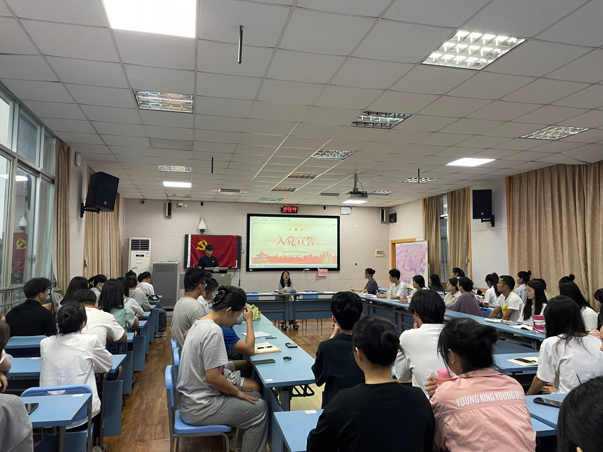 4月23日下午,BWIN必赢本科生第四党支部于五综511教室召开预备党员宣誓大会,本次会议由支部书记勒韦倩主持,支部全体党员参加会议。