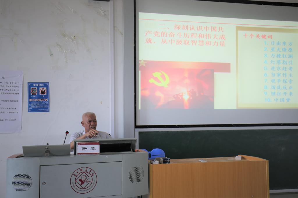在党史宣讲会中,陆慧紧紧围绕“学党史 强党性 跟党走”的主题开展宣讲。内容主要包括三个章节,分别是:一、以习近平总书记关于党史学习重要论述为根本遵循,增强党史学习教育的自觉性和主动性;二、深刻认识中国共产党的奋斗历程和伟大成就,从中汲取智慧和力量;三、学懂弄通习近平新时代中国特色社会主义思想,增强四个意识、做到两个维护。