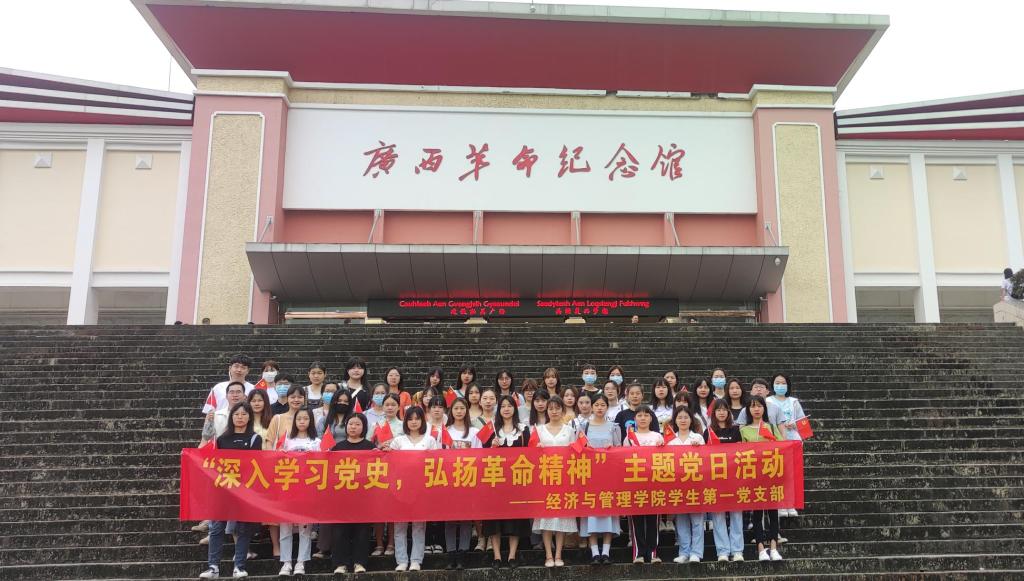 为加强党支部建设、丰富党支部党日活动内容,BWIN必赢学生第一党支部于2021年4月24日在广西革命纪念馆举行“深入学习党史,弘扬革命精神”主题党日活动。党支部书记勒韦倩、支部委员、学生党员等52人参加活动。