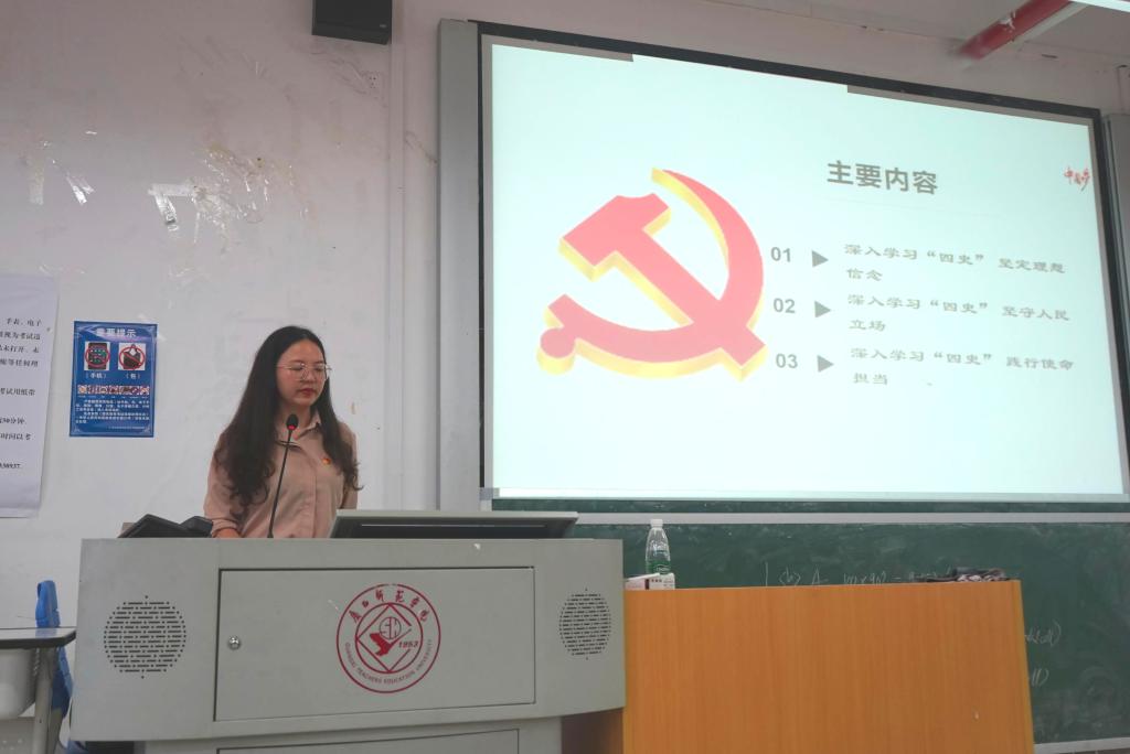 本次培训内容分为三个部分:一是深入四史,坚定理想信念。刘家瑶老师通过讲述吴仁宝、孔繁森、廖俊波等优秀共产党员的光荣事迹,强调共产党人的信仰追求,启发了学生们要见贤思齐,积极向前辈学习,坚定理想信念,并以实际行动践行初心使命。二是深入四史,坚守人民立场。刘老师详细讲述了“中华儿女多奇志,不爱红装爱武装——韦慧晓”的故事,提出了同学们要向韦慧晓同志学习,明确自己的目标并为之不懈努力的希望。三是深入四史,践行使命担当。刘老师通过介绍“新”四大发明——高铁、网上购物、线上支付、共享单车为切入点,反映时代发展之快,由此强调共产党领导的重要性。同时通过具体的例子启发同学们明确政治信念,以科学的立场提升党性思维,坚定不移地信仰共产主义。