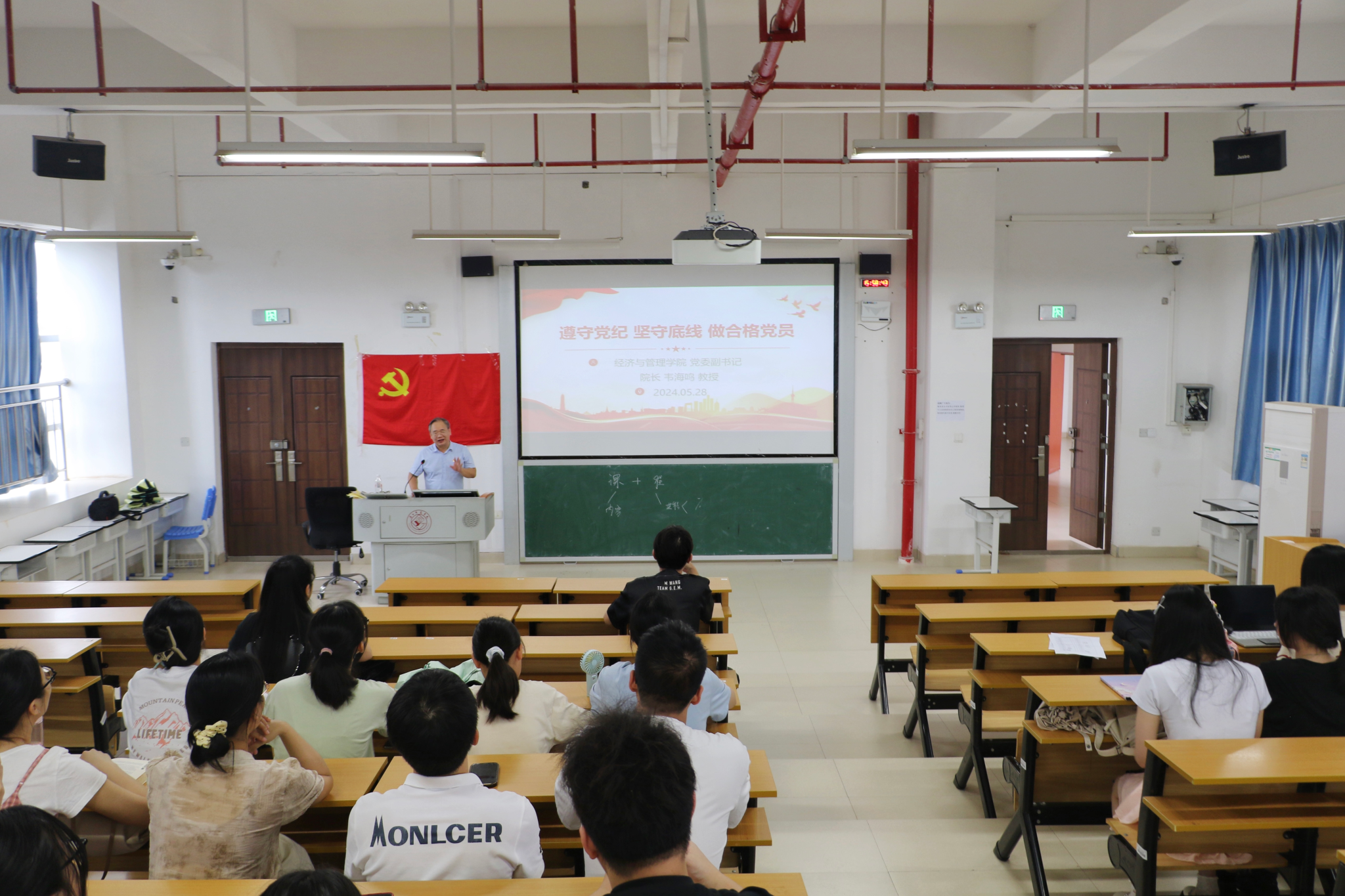 为扎实开展好党纪学习教育,引导青年学生党员学纪、知纪、明纪、守纪,528日,BWIN必赢在五合校区文理综合楼开展了以“遵守党纪 坚守底线 做合格党员”为主题的党课。由BWIN必赢党委副书记、院长韦海鸣教授担任主讲人,研究生第一党支部和研究生第二党支部全体党员参加学习。